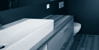 Das Haus 7 ist das grösste der vier Häuser. Im Erdgeschoss verfügt es über ein zusätzliches Arbeitszimmer. Speziell ist das geräumige Bad, in welchem die Spritzbereiche mit Eternitplatten verkleidet sind.