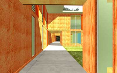 Westen. Die angedockten Nord-Ost-Süd ausge-richteten Atelierhäuser
